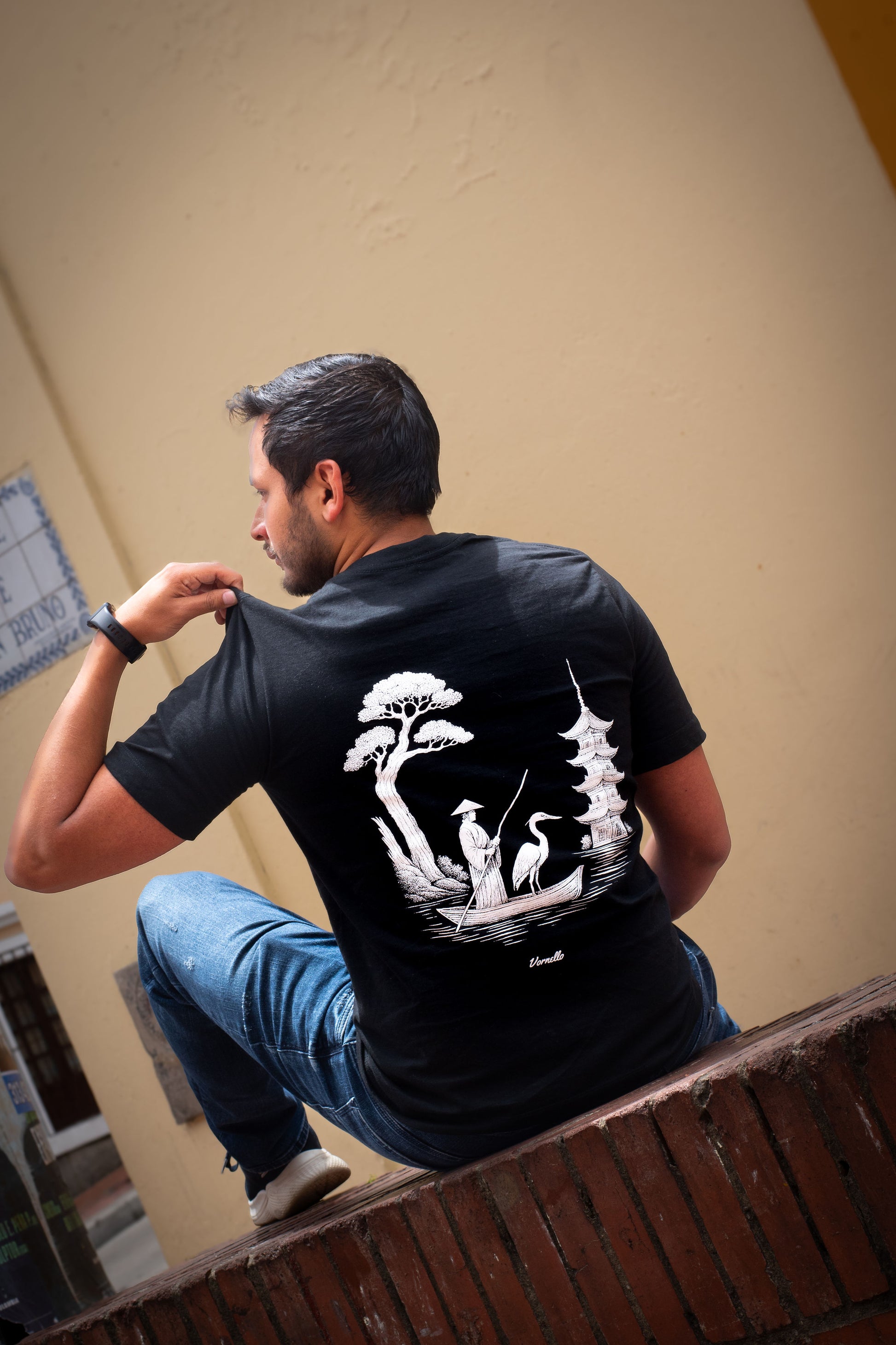 Camiseta de manga corta en color negro con un diseño exclusivo de la marca Vornello.
